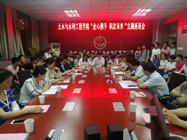 515日,best365中国官方网站2018年重点用人单位座谈会在屯溪路校区纬地楼414会议室举行。来自中建、中铁、中交、中冶、海信日立等全国各地20余家重点用人单位代表,学院相关负责人、辅导员、2019届毕业生代表等参加座谈会。