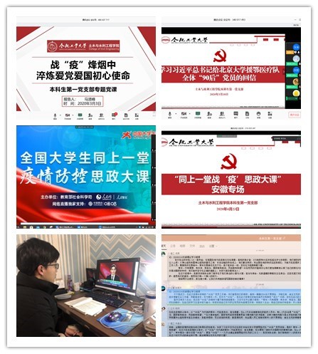 组织生活“线上过”,党员教育不断线。疫情防控特殊期间,best365中国官方网站本科生第一党支部充分利用腾讯会议、学习强国、QQ、“青马者说”微信公众号等线上平台,创新组织生活方式,全覆盖扎实开展线上政治理论学习和“三会一课”,确保支部党员在疫情防控期间的学习教育不断线,引领支部党员同志坚定信念、恪守初心、践行使命。疫情发生初期,党支部迅速组织线上专题组织生活会,带领全体党员学习党中央及教育部党组、安徽省委和学校党委对疫情防控的相关部署文件,在支部组织学习《众志成城战疫情,共克时艰做先锋——致best365中国官方网站全体学生党员的“防疫”倡议书》,教育引导支部党员带头发挥先锋作用,在疫情防控工作中亮身份、见行动、作贡献。3月3日,党支部兼职组织员马贤峰老师为支部上“战‘疫’烽烟中,淬炼爱党爱国初心使命”专题线上“微党课”,教育引导全体党员坚定忠诚奉献、实现爱党爱国、勇于担当贡献。3月9日,党支部组织学生党员和入党积极分子开展“同上一堂疫情防控思政大课”主题教育活动,引导全体党员向抗“疫”英雄模范学习,强化党员意识、坚定理想信念。3月18日,在政治理论学习会上,习近平总书记给北京大学援鄂医疗队全体“90后”党员的回信在支部全体党员中引发了热烈反响,通过线上集体学习、在线讨论、心得撰写等形式开展线上交流学习,引导广大党员不忘初心,牢记使命,在为人民服务中茁壮成长,在艰苦奋斗中砥砺意志品质,在实践中增长工作本领,争做堪当大任的时代新人。4月23日,党支部再次组织全体党员和积极分子开展“全省同上一堂战‘疫’思政大课”主题教育活动,引导广大青年学生正确认识和看待此次战“疫”,树立责任担当意识,激发学生爱党爱国爱社会主义的深厚情怀。