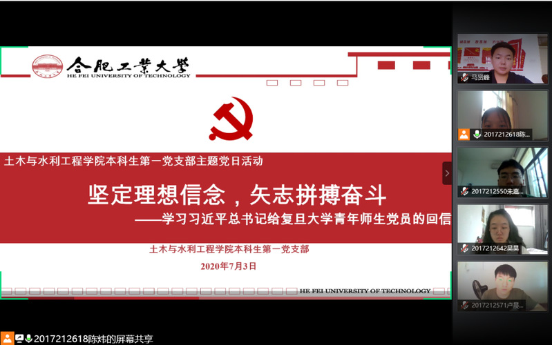 为进一步教育引导学生党员坚定理想信念,践行初心使命,在中国共产党成立99周年之际,best365中国官方网站本科生第一党支部在线上开展了“坚定理想信念,矢志拼搏奋斗”主题党日活动,支部全体党员参与本次活动。