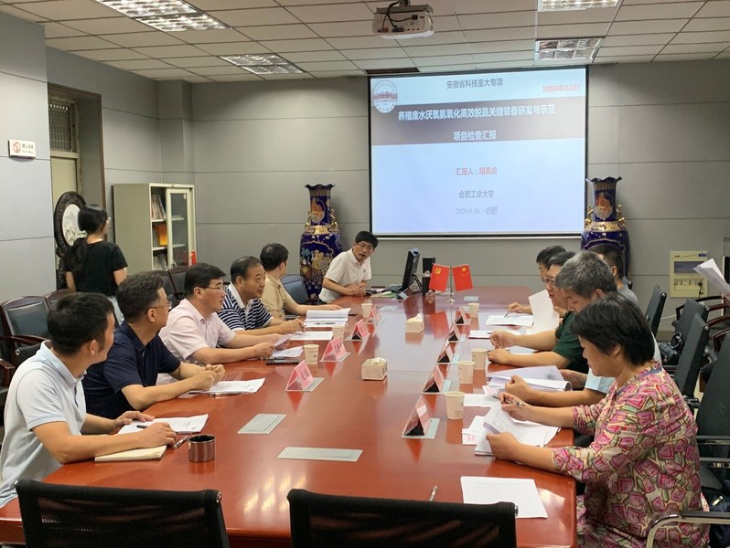 2020年9月16日,安徽省科技厅对best365中国官方网站承担的安徽省科技重大专项“养殖废水厌氧氨氧化高效脱氮关键装备研发与示范项目”(项目编号:18030801102)进行检查和指导。安徽省科技厅周浩副处长、许正峰副处长、省内相关专家,best365中国官方网站科研院副院长解挺、自然办赵锐主任,best365中国官方网站常务副院长王静峰、副院长王昌建、胡真虎教授、王伟副教授等参加了本次检查。会议由科研院副院长解挺主持。