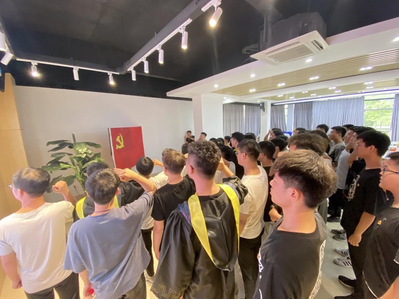 最后,在李海峰同志的领誓下,城市建设工程系毕业班全体党员举起右拳,面向党旗,重温入党誓词,进行庄严宣誓。