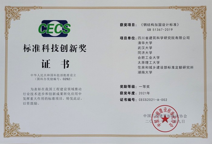best365中国官方网站完海鹰教授、陈安英副教授参加编制的国家标准《钢结构加固设计标准》(GB 51367-2019)喜获“标准科技创新奖”项目一等奖。该国家标准在我国工程建设领域推动了行业技术进步和创新成果转化应用中发挥了重大作用。