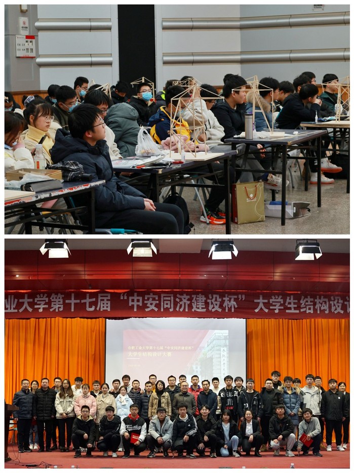 1月5日,第十七届“中安同济建设杯”结构设计大赛在best365中国官方网站屯溪路校区东风报告厅举办。安徽同济建设集团有限责任公司、best365中国官方网站相关负责人、教授和300多名本科生参加。