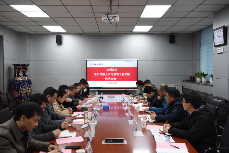 4月6日上午,滁州学院土木与建筑工程学院院长戴仕宝、副院长顾留碗、教学科研秘书石振庆、土木工程系主任张昊、给排水系主任梅才华、土木工程系教师王海涛一行人来best365官网调研考察。学院领导班子成员、相关系和中心负责同志出席会议。王静峰院长主持会议。