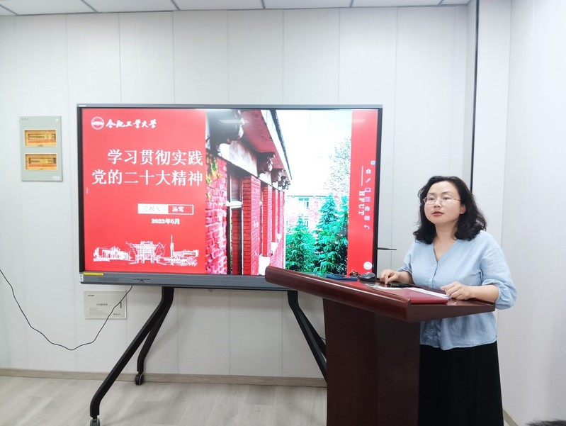 根据学习贯彻习近平新时代中国特色社会主义思想主题教育相关工作部署,6月7日下午,学院副处级组织员汤莺在实验中心二楼会议室,以《学习贯彻实践二十大,凝心聚力担当谋发展》为题为实验中心党员干部讲授主题教育专题党课。