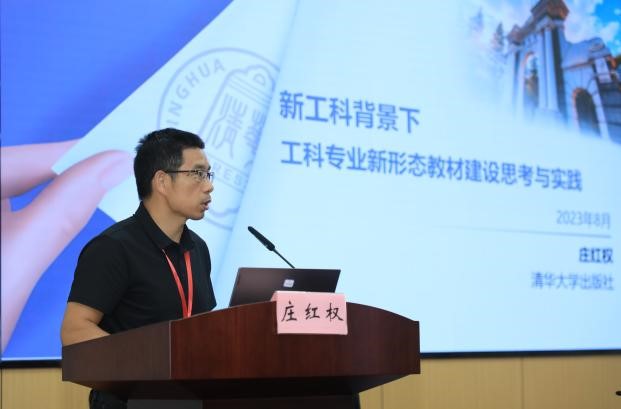 庄红权在致辞中感谢我校对会议的大力支持,介绍了清华大学出版社出版的智能建造系列教材和资源建设情况,并表示出版社将大力推进数字出版和融合发展,促进我国智能建造新工科发展。