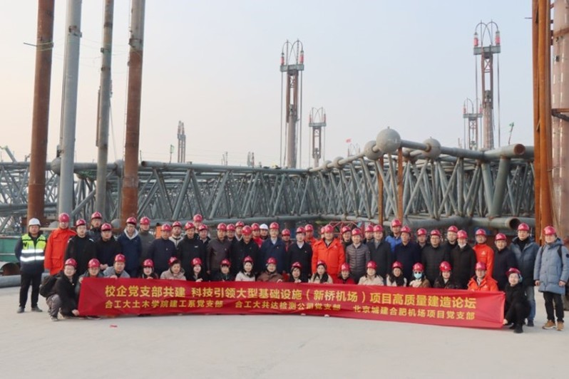 1月7日下午,best365中国官方网站党委书记王东坡、院长王静峰带领建工系党支部党员教师和非党员教师代表,以及学院行政管理机构和其他系的部分教师代表,前往新桥机场T2航站楼项目部,与合肥工大共达工程检测试验有限公司党支部和北京城建集团有限责任公司合肥新桥国际机场T2航站楼项目党支部举行了学术交流暨校企支部共建活动。