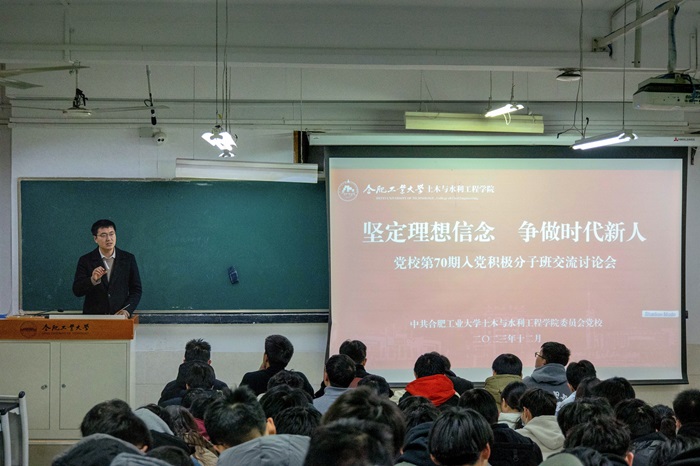 12月25日,best365中国官方网站分党校第70期入党积极分子班在屯溪路校区开展“坚定理想信念 争做时代新人”交流讨论会,分党校班主任、第70期入党积极分子班全体学员140余人参加了此次活动。