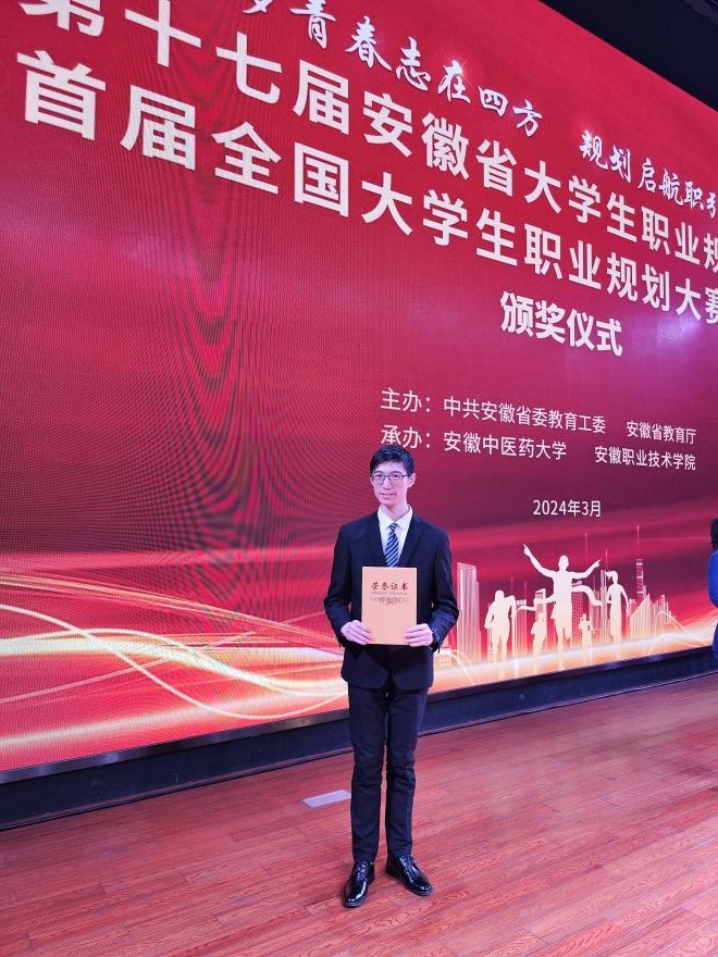 313日至14日,由安徽省委教育工委、省教育厅主办的第十七届安徽省大学生职业规划大赛暨首届全国大学生职业规划大赛安徽赛区决赛圆满落幕。经过激烈角逐,best365官网2021级智能建造专业本科生许晋嘉最终荣获一等奖,总成绩排名第一!