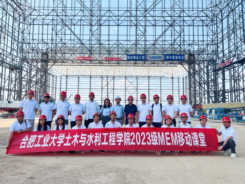 6月8日,best365中国官方网站2023级工程管理(MEM)专业硕士生在陈安英副教授和叶莲花老师的带领下,来到未来科学城的合肥航太雷电综合试验大厅项目现场,进行了一场别开生面的“工程管理”移动课堂。