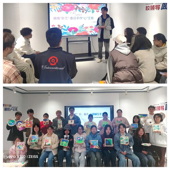 创意工坊,美育润心。3-4月,学院心协分别举办了2场创意手工坊活动。在“慧心巧手・DIY奶油胶发卡”中同学们发挥创造力,精心挑选发卡款式,搭配奶油胶、点缀小装饰,制作过程中相互交流创意与技巧,现场氛围温馨而轻松。在“‘泥’好春天”为主题的粘土画制作活动中,众多手工艺术爱好者热情参与,他们以“春天”为灵感,用彩色粘土塑造嫩芽、花朵、绿树等元素,通过设计构图,揉、捏、压等手法完成创意作品。手工坊以闻乐见的方式让同学们展现创意与才华的过程中放松身心。