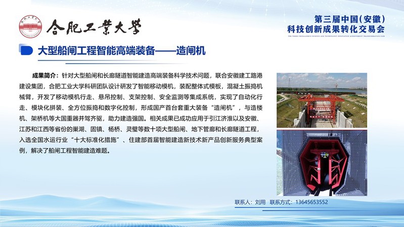 2025年4月26日至28日,第三届中国(安徽)科技创新成果转化交易会在合肥滨湖国际会展中心隆重举行。best365中国官方网站携两项重大科技成果参展,分别为国家重点研发计划“固废资源化”重点专项成果《废弃混凝土砂粉再生利用关键技术与装备》、校企合作成果《大型船闸工程智能高端装备“造闸机”》,充分展现学院在低碳建造与智能装备领域的创新实力。