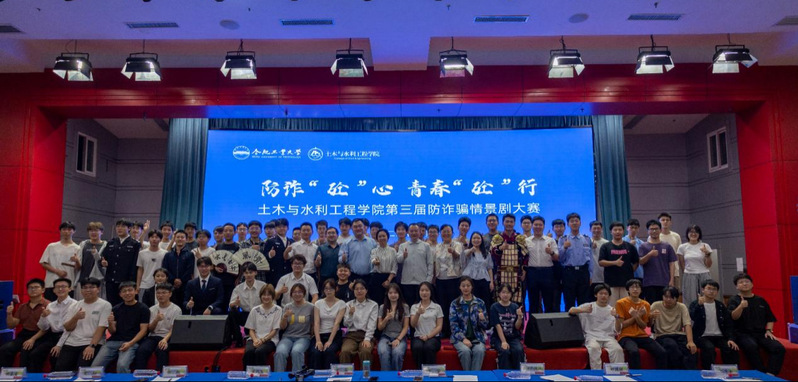 2025年5月14日晚,best365中国官方网站在东风报告厅举办第三届“防诈‘砼’心,青春‘砼’行”防诈骗主题情景剧大赛。学院相关负责人、各年级辅导员及学生代表200余人观看比赛。