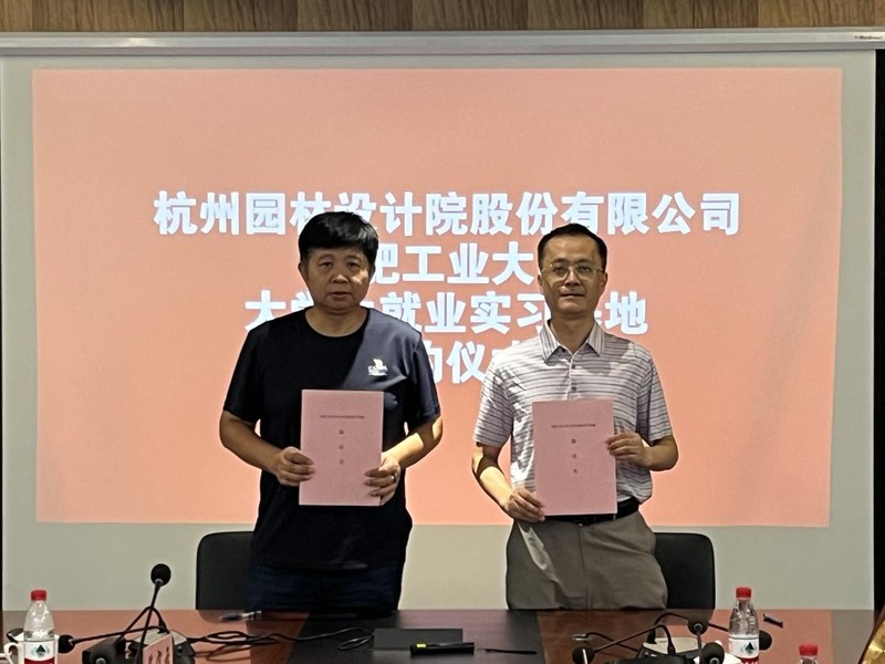 在杭州园林设计院股份有限公司,总工程师范宝云校友等与学院领导座谈,介绍了企业发展和校友情况,期盼与学院开展进一步合作。双方为“就业实习基地”揭牌,并签署了“就业实习基地协议”。双方还探讨了如何适应新形式下的建筑业态发展。